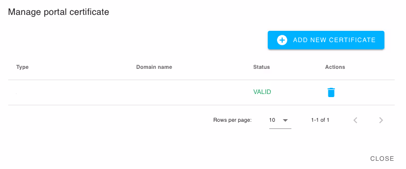Mit der Schaltfläche Zertifikatseinstellungen können Sie den Zertifikatsstatus des betreffenden Portals einsehen.