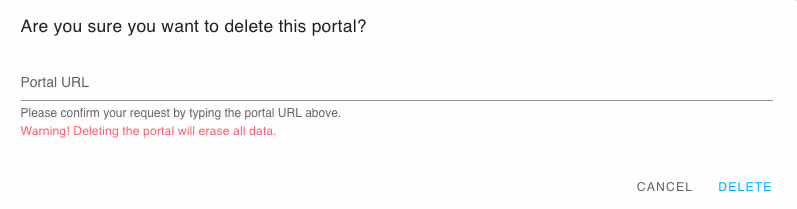 Um das entsprechende Portal zu löschen, muss die Portal-URL zur Bestätigung eingegeben werden.